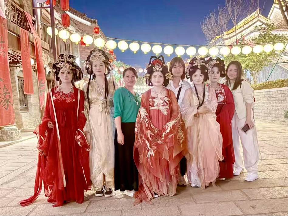 洛阳作为十三朝古都,以其深厚的历史文化底蕴和绚丽的花城风貌迎接参访团。在隋唐城遗址植物园,团员们沉醉于牡丹的国色天香;龙门石窟的艺术瑰宝、洛邑古城的古韵悠长,都让他们流连忘返。“80后”台胞黄女士和姐妹们在各个景点尽情拍照,还特意换上汉服,在洛邑古城的夜色中圆了一场“贵妃梦”。
