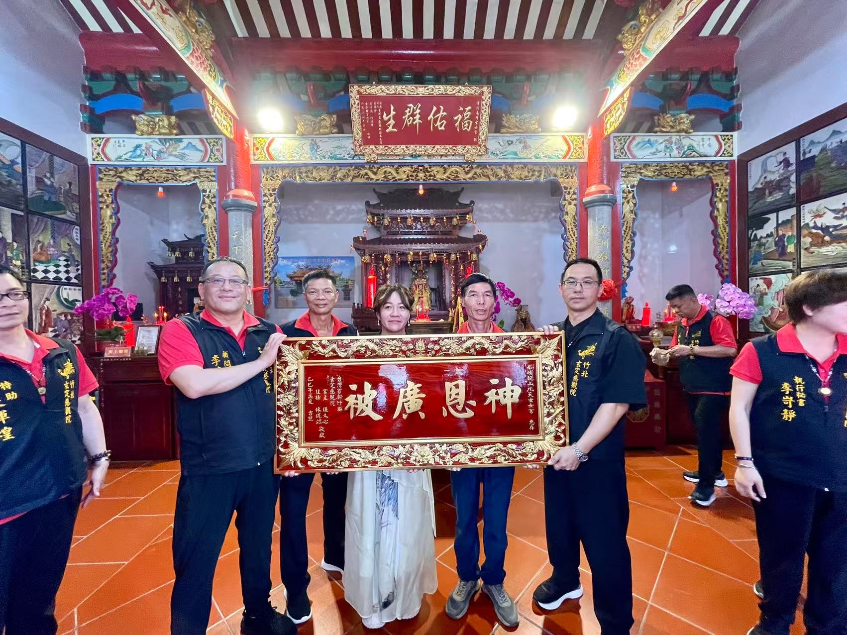 在全体成员的共同见证下,台湾新竹县玄定慈观院与南靖玄女宫举行了意义非凡的签约仪式,正式缔结为友好宫庙。新竹玄定慈观院宫主张又心、漳州南靖玄女宫管理委员会主任陈志明代表双方签约,这一签约不仅确定了两宫的友好合作关系,更为两岸民俗文化事业的融合发展与创新搭建了坚实的桥梁。