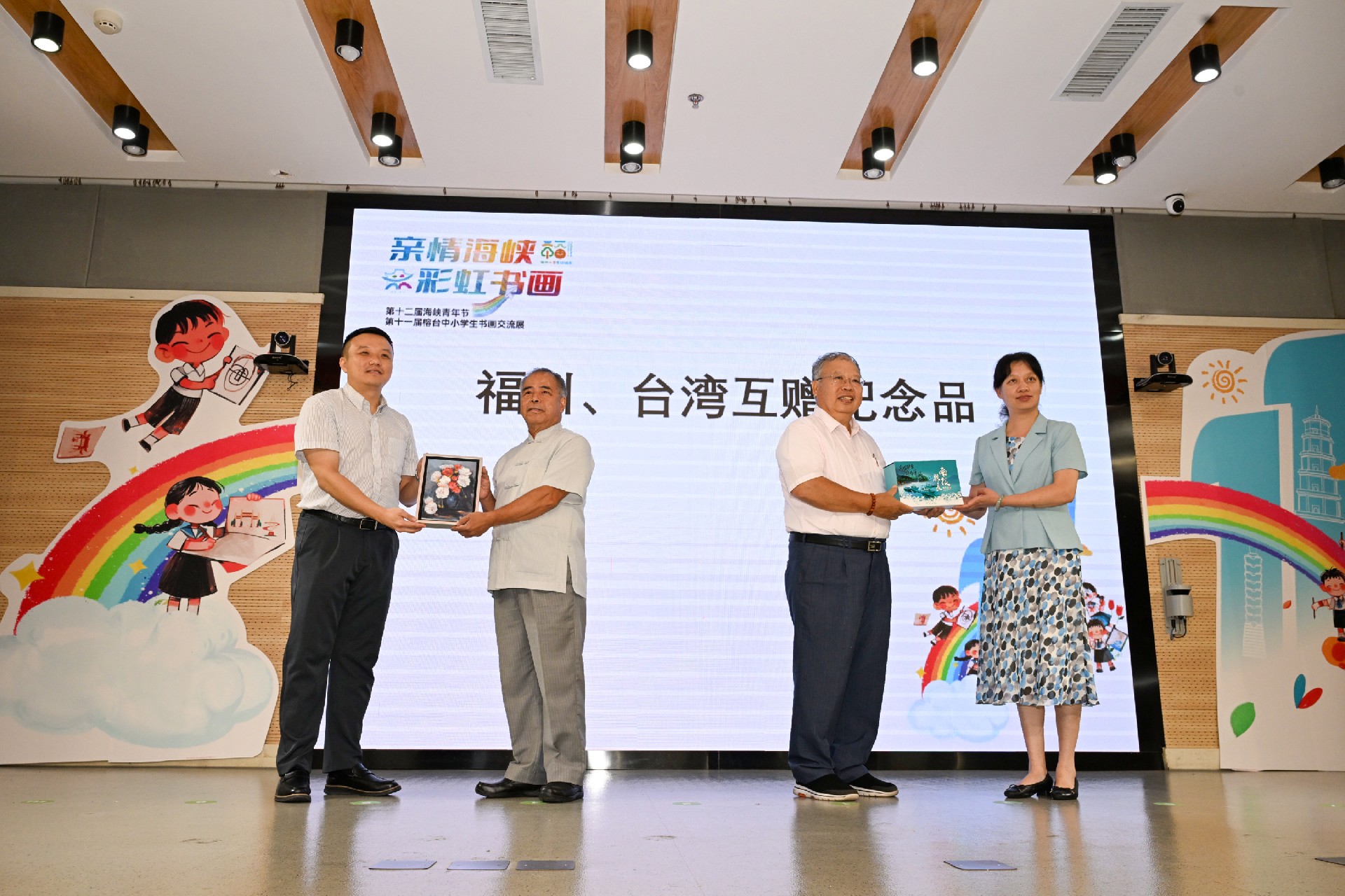 作为第十二届海峡青年节的系列活动之一,第十一届榕台中小学生书画交流展于 2024 年 8 月 16 日在福建省少年儿童图书馆隆重开幕。现场气氛热烈,多达 600 余名两岸嘉宾、师生及家长参与了开幕、颁奖及点评交流等相关活动。