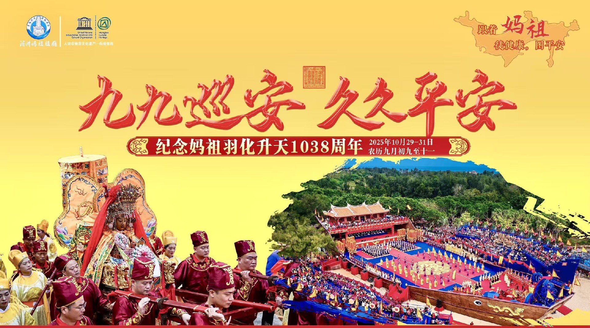 10月29日(农历九月初九)8时20分,莆田湄洲妈祖祖庙内锣鼓铿锵、礼炮轰鸣,随着“恭请湄洲妈祖金身起驾!”的庄重宣告,纪念妈祖羽化升天1038周年暨“九九巡安、久久平安”妈祖金身巡安湄洲岛系列活动正式拉开帷幕。来自7个国家及两岸多地的500...